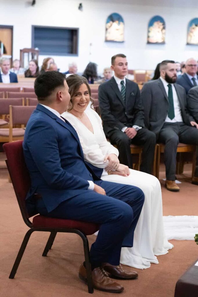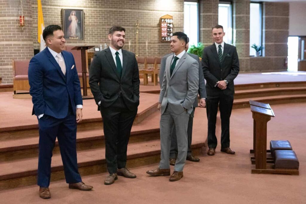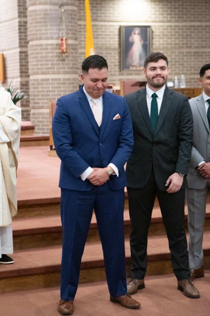 Before mass, guests began gathering in the church and Sarah hid out in a side room with her bridesmaids while Rex and his groomsmen were in the sanctuary.