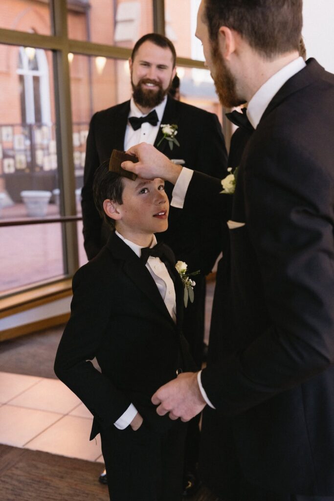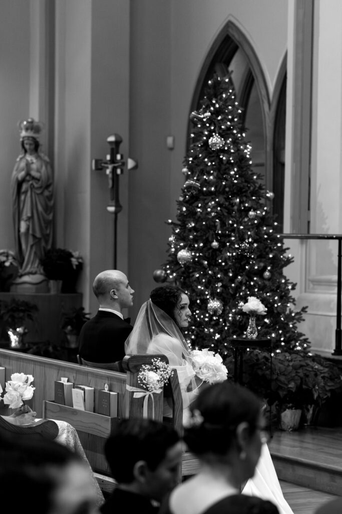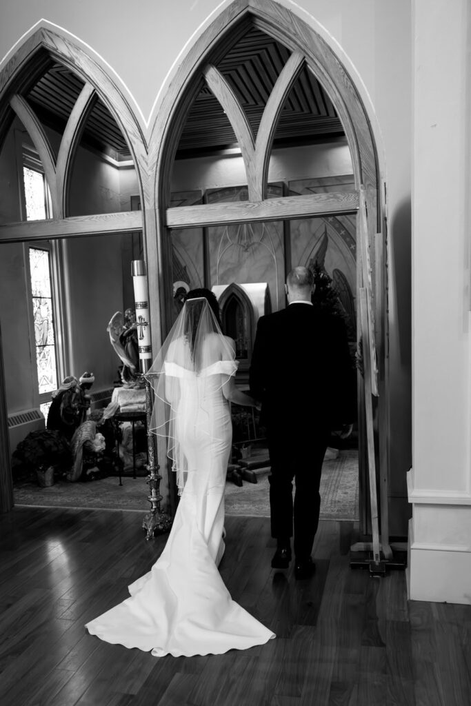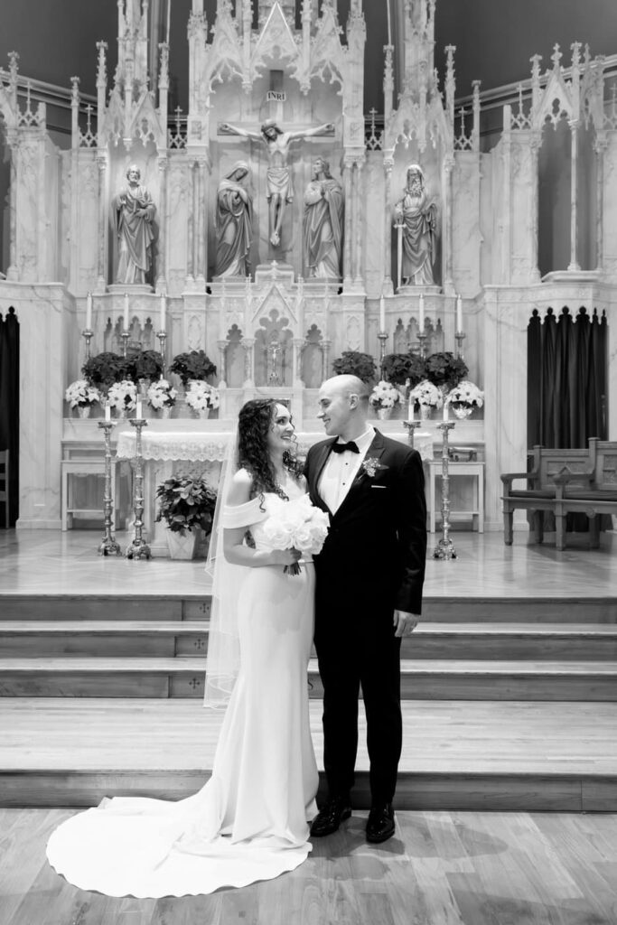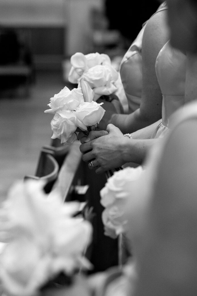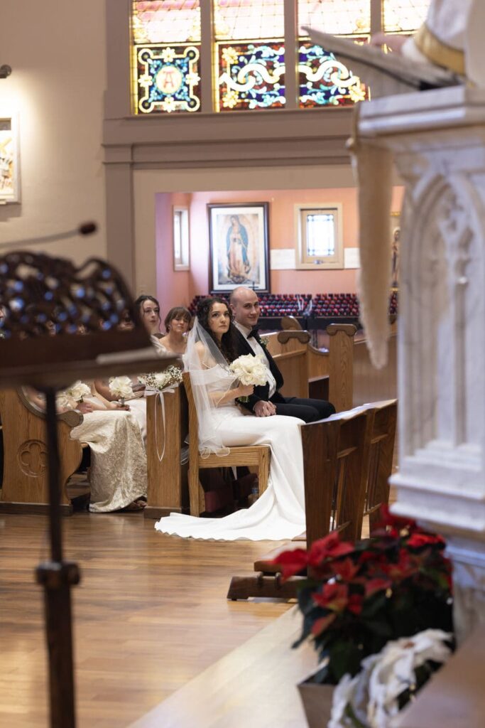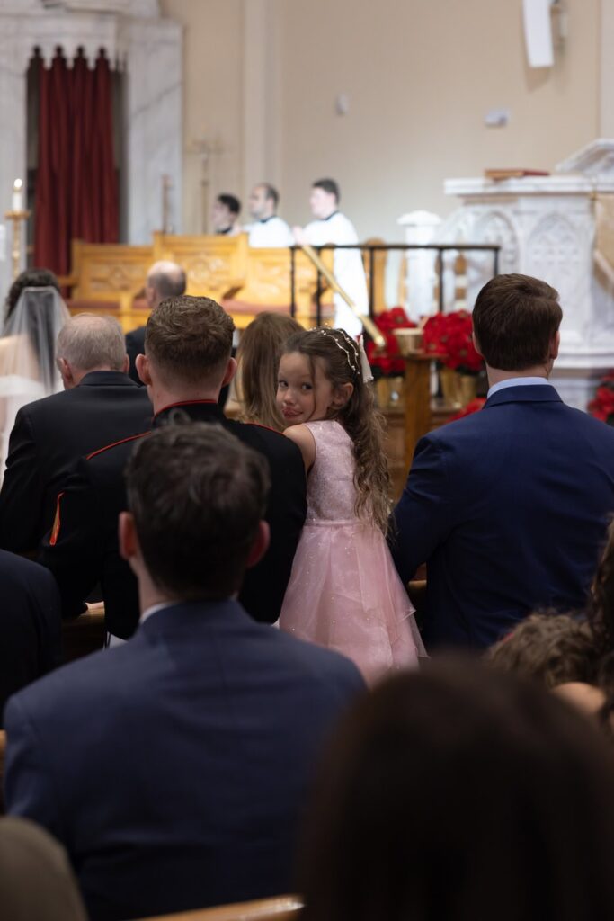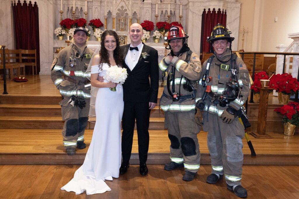 The most unexpected part of the day happened right as mass was ending. The acolyte was a little too liberal with the incense and set off the fire alarm in the church. As the couple was signing the marriage license, the alarm started sounding and the priest didn’t even flinch. Thankfully, the firefighters arrived quickly after and were able to turn off the alarm so we could do the planned family formals in the sanctuary. (Instagram reel of the very moment this happened linked below.)