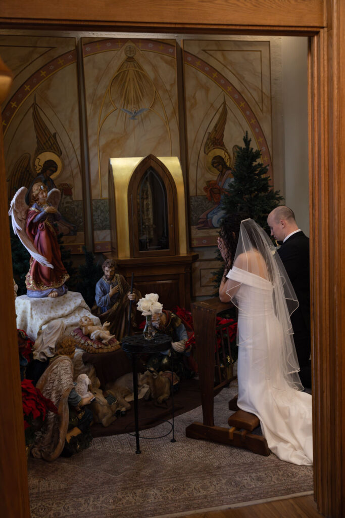 I love photographing Catholic weddings because of the clear meaning, sacredness, and joy involved in the mass. The couple knows they are making the covenant of marriage before God and they see marriage as the greatest gift. When I’m photographing a wedding mass, I am sure to stay mostly out of the center aisle so as not to distract from the mass. But I am careful to capture each meaningful moment since each moment of the mass is intentional and valued. If you are planning your Catholic or Christian wedding and want someone who will honor the solemnity of the ceremony, inquire on my website today. I cannot wait to hear from you!