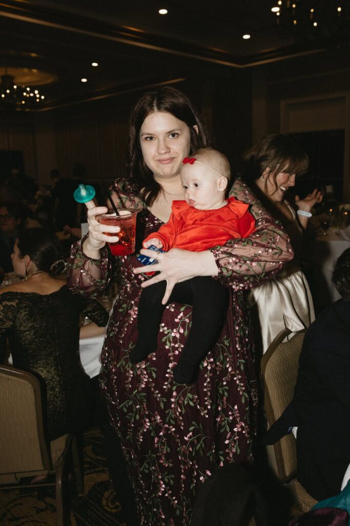 Dan and Eva have a lot of family members and close friends, so they decided to invite everyone and hold their reception at the Antlers Hotel in downtown Colorado Springs. The Antlers has several different ballrooms to pick from and the service is extraordinary. They run events and receptions like a well-oiled machine. The cocktail hour started out in the hallway outside the room with two bars and servers walking around with crowd-pleasing appetizers. The space was a bit crowded but bustling with happy guests. The joyful energy was evident.