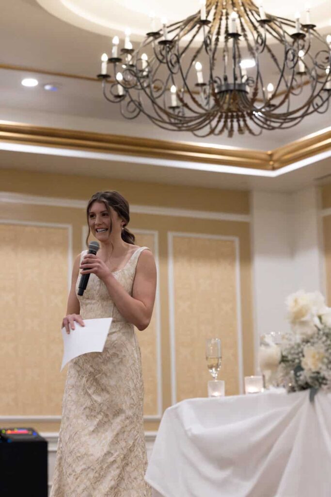 After dinner the bride’s father and mother both gave such moving speeches about Eva– her virtues, her personality which has been the same since she was little. They had only positive things to say about Dan and their relationship. It was so sweet to see a family in full support of their daughter and new son-in-law. The maid of honor and best man both knocked it out of the park with their speeches as well. They told funny stories but all in an honoring spirit.