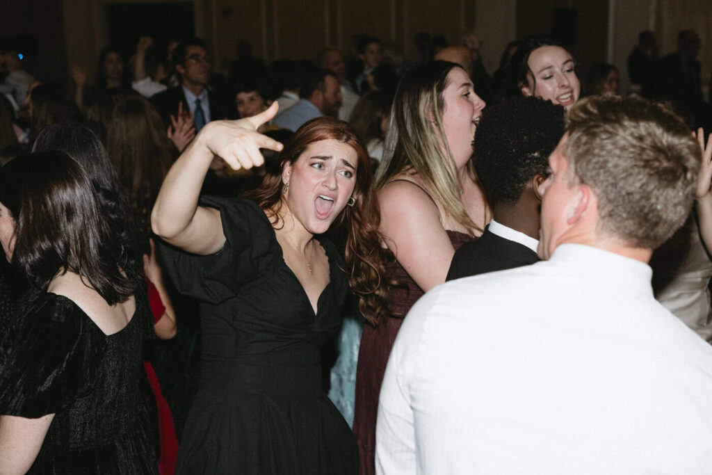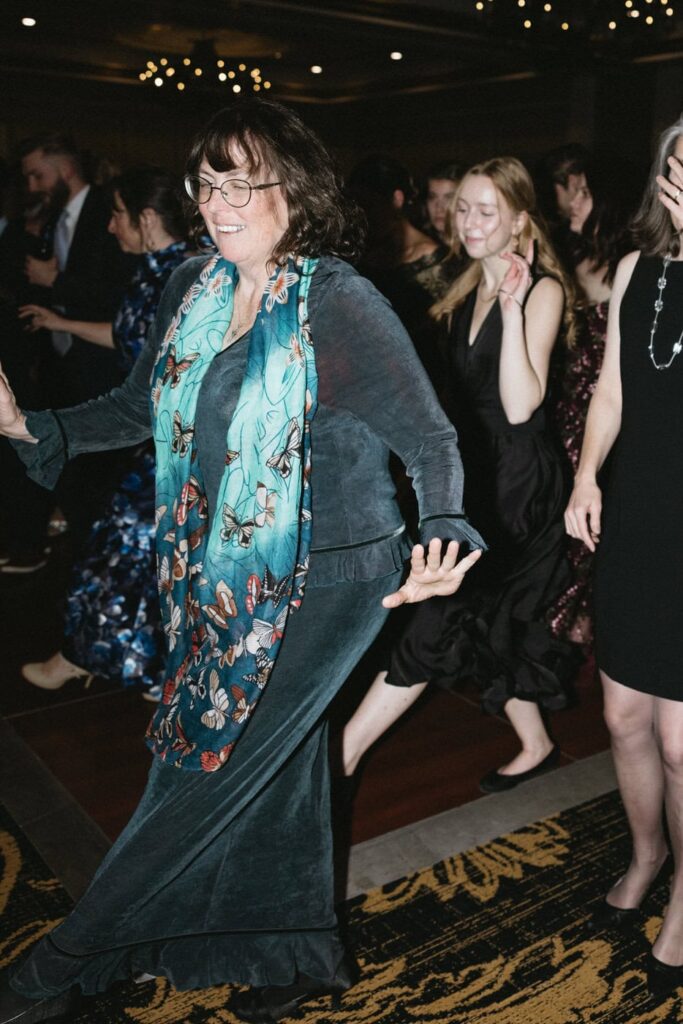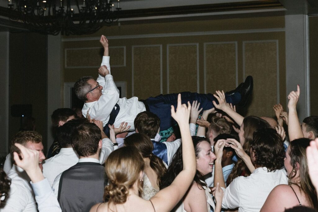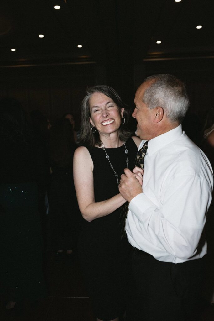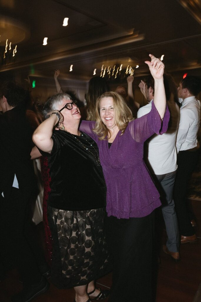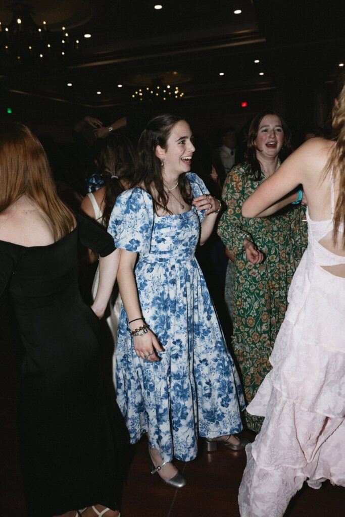 Dan and Eva cut the cake– a gluten-free, dairy-free beauty from Sweet Elizabeth’s Organics. They kicked off the dance floor with their first dance, Eva danced with her dad who was smiling the whole time. Then DJ Casey really got party started and the dance floor remained full the entire rest of the evening! Talk about a great party. The father of the bride was surprised to be lifted up into the air and crowd surf for the first and probably only time in his life. At a wedding reception, I love to get in on the action– make my way to the dance floor and get close ups of the guests having the best time. So of course I have to share some of those dance floor photos here!