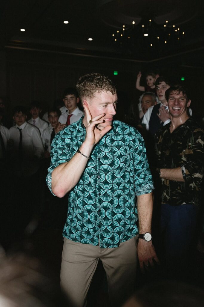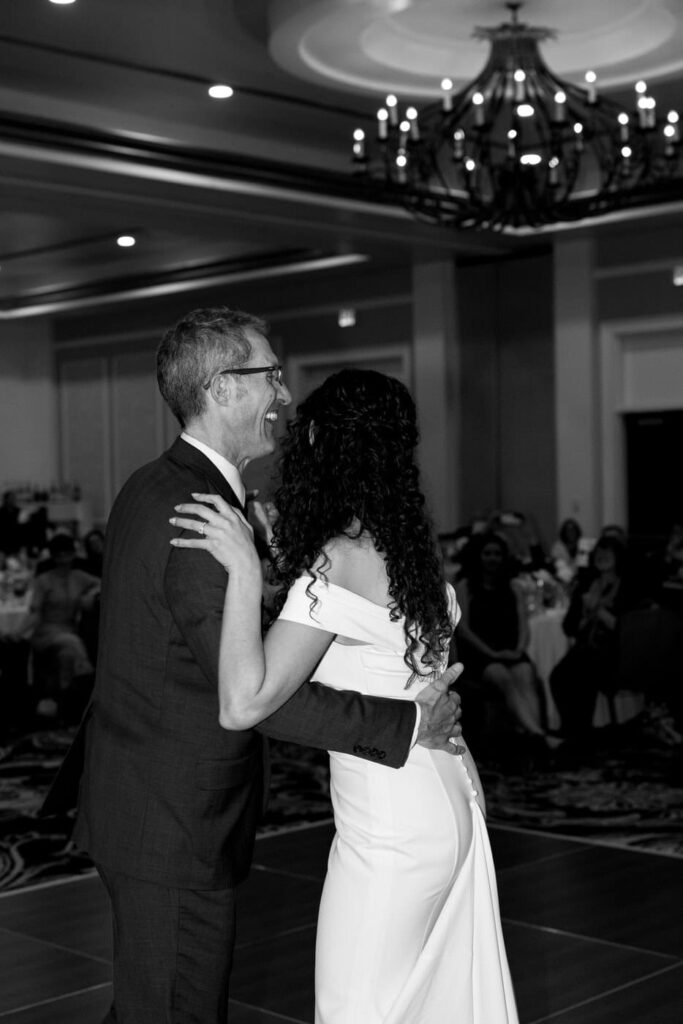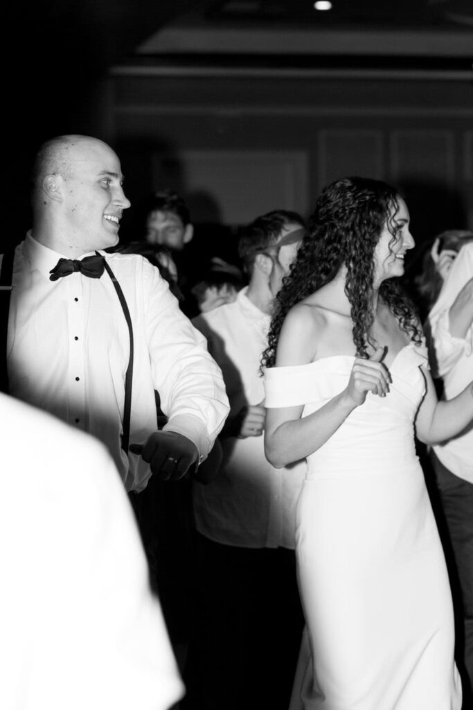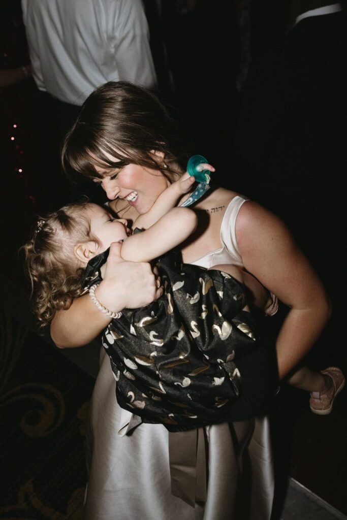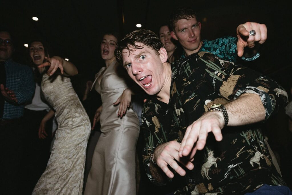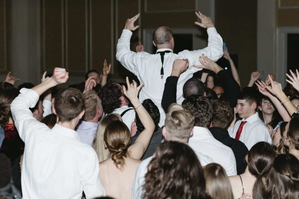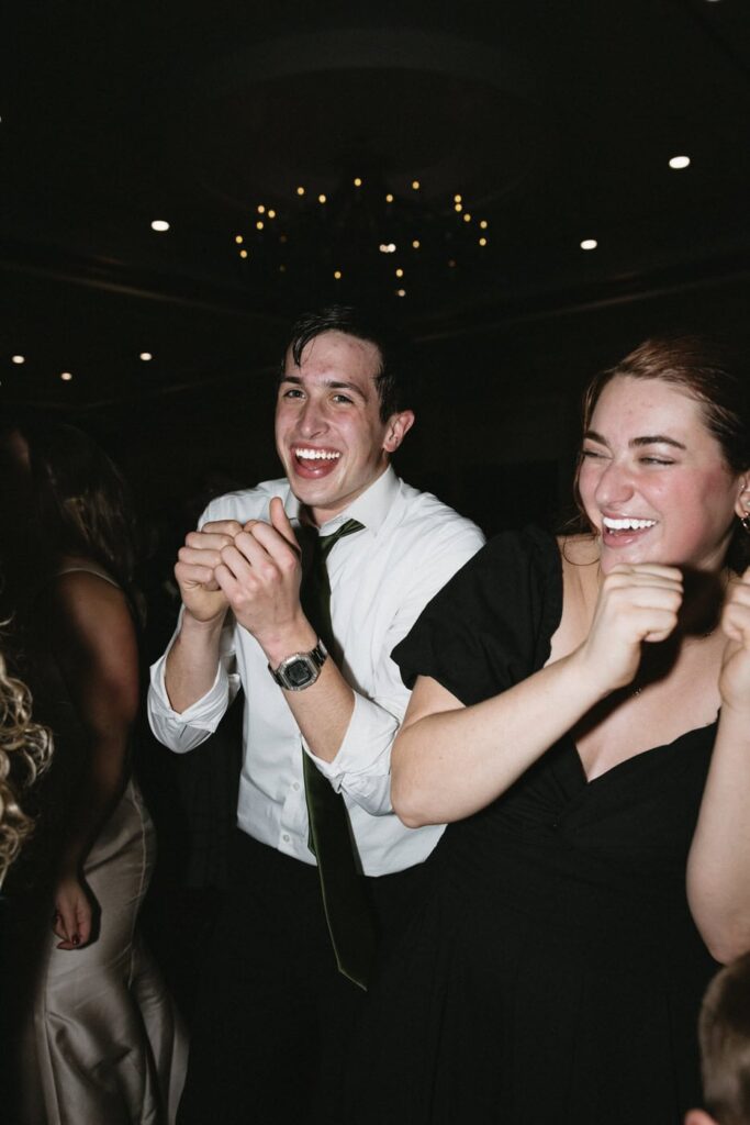 Dan and Eva cut the cake– a gluten-free, dairy-free beauty from Sweet Elizabeth’s Organics. They kicked off the dance floor with their first dance, Eva danced with her dad who was smiling the whole time. Then DJ Casey really got party started and the dance floor remained full the entire rest of the evening! Talk about a great party. The father of the bride was surprised to be lifted up into the air and crowd surf for the first and probably only time in his life. At a wedding reception, I love to get in on the action– make my way to the dance floor and get close ups of the guests having the best time. So of course I have to share some of those dance floor photos here!
