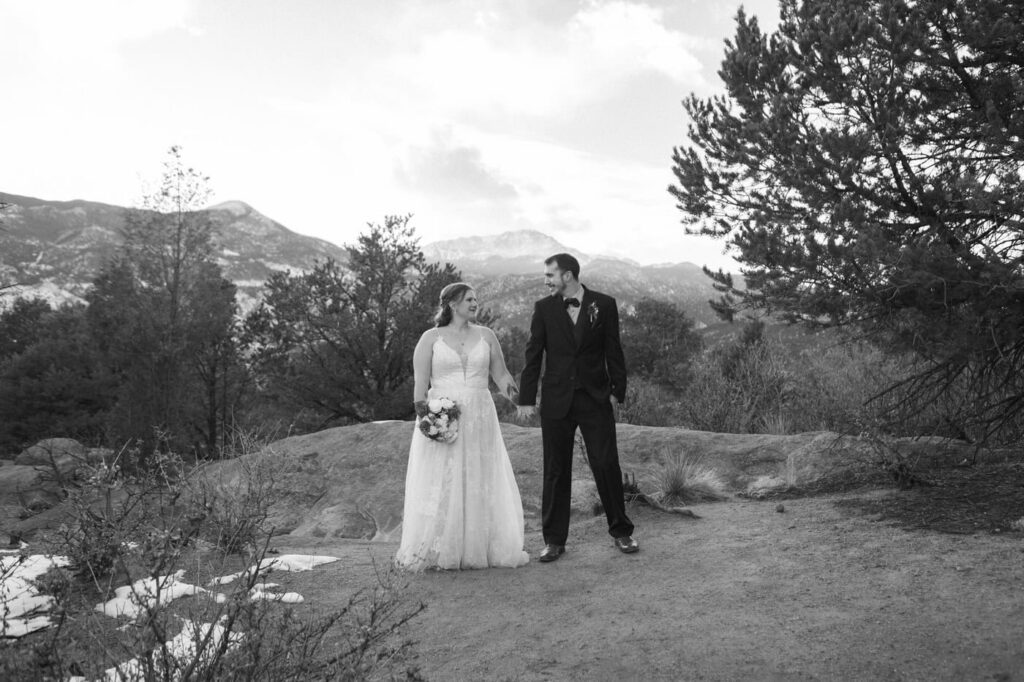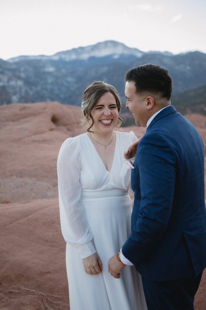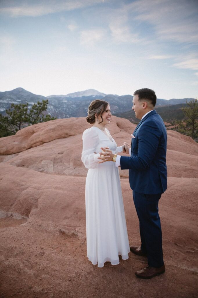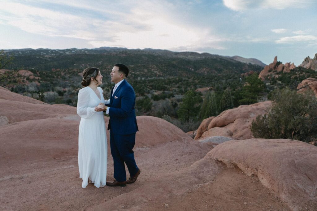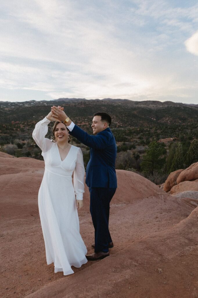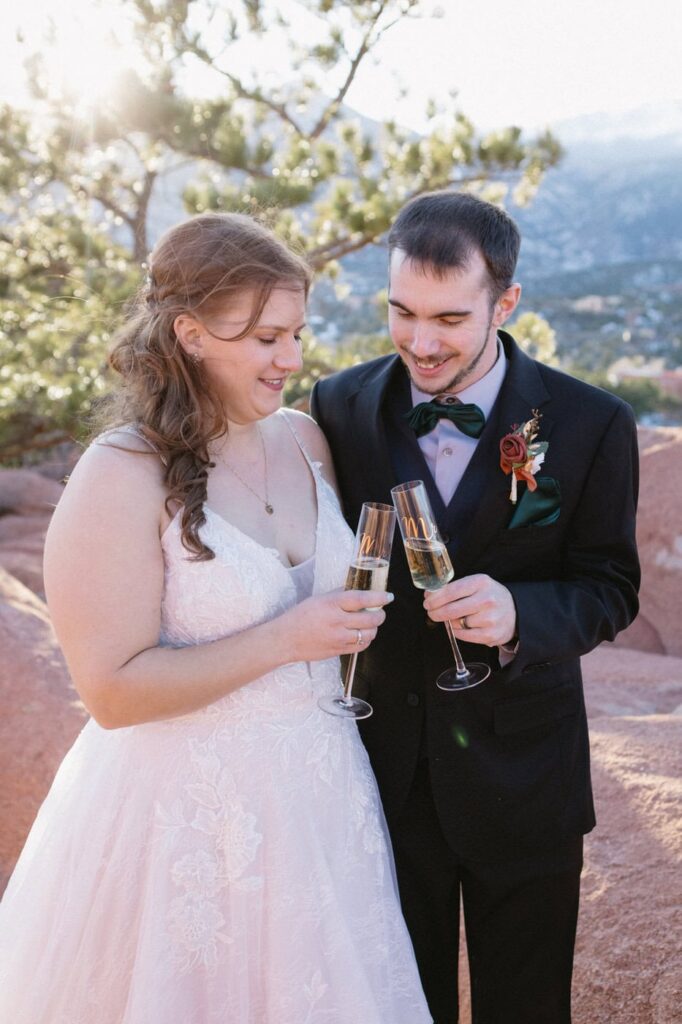 When we arrived at the high point overlook, the wind was fierce! We found some shelter walking down the path and got some great views of Pikes Peak. They brought champagne and glasses to do some sweet glass-clinking photos. Some of my favorites were in the full wind when it had picked up right near the end of the session. The wind can create such drama in photos!