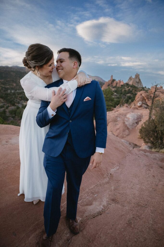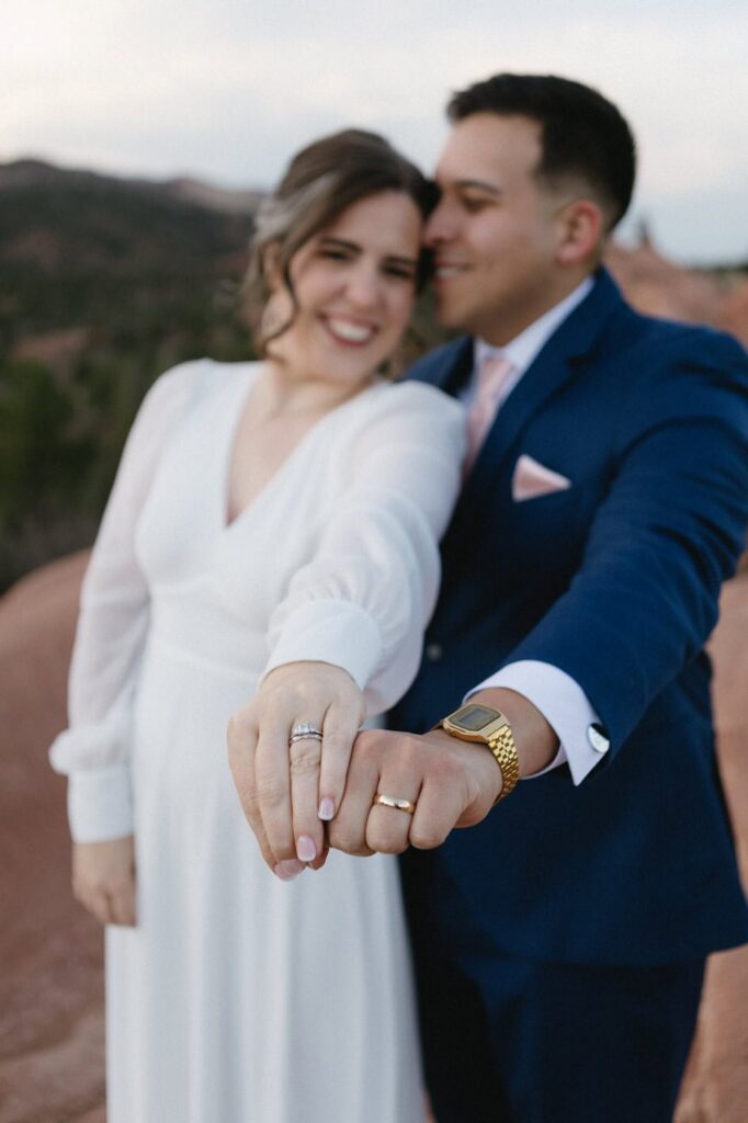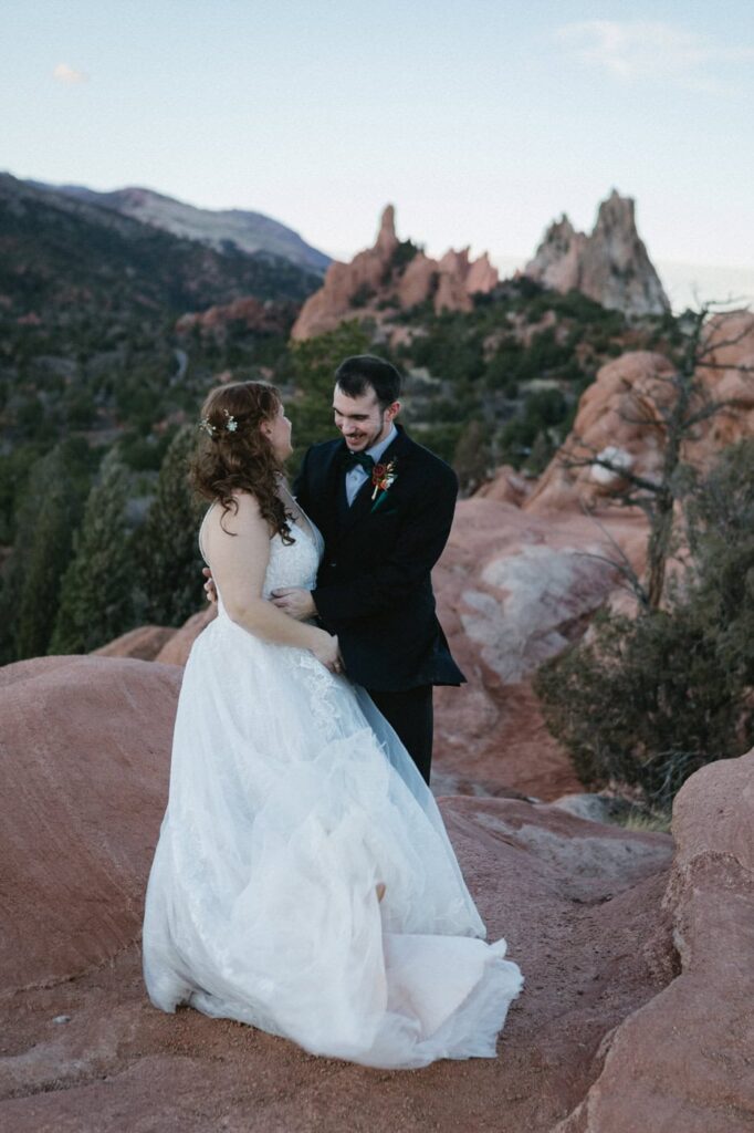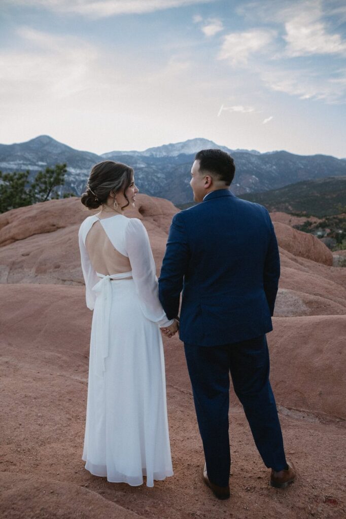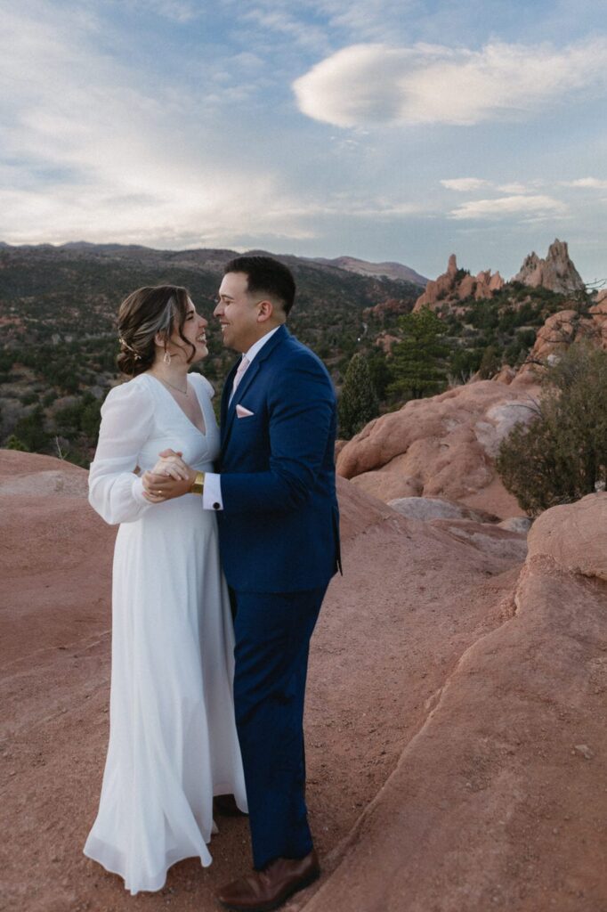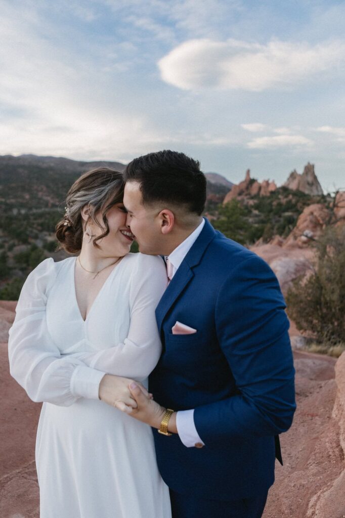 When we arrived at the high point overlook, the wind was fierce! We found some shelter walking down the path and got some great views of Pikes Peak. They brought champagne and glasses to do some sweet glass-clinking photos. Some of my favorites were in the full wind when it had picked up right near the end of the session. The wind can create such drama in photos!